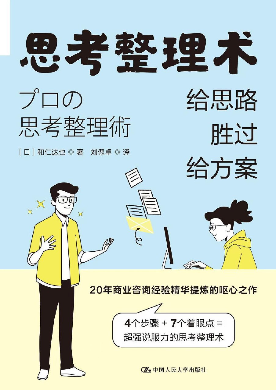 思考整理术是一种"不必给出解决方案,却能轻松消除对方的烦恼和困惑"的全新沟通方法。只需帮助对方厘清混乱的思维,对方就会迅速对你敞开心扉。该方法所做的并不是解决问题,而是引导和梳理对方的思路。通过思维整理,对方能察觉到之前未能察觉的问题,也能意识到自己真正想要做的事。思考整理术的4个步骤:确定主题;了解现状;描绘理想;寻找条件。思考整理术的7个着眼点:对方是否意识到了自己的价值;是否陷入了思维贫瘠;视角的平衡;用数字表达;痛点在哪里;预测成本效益;信息量的不一致。