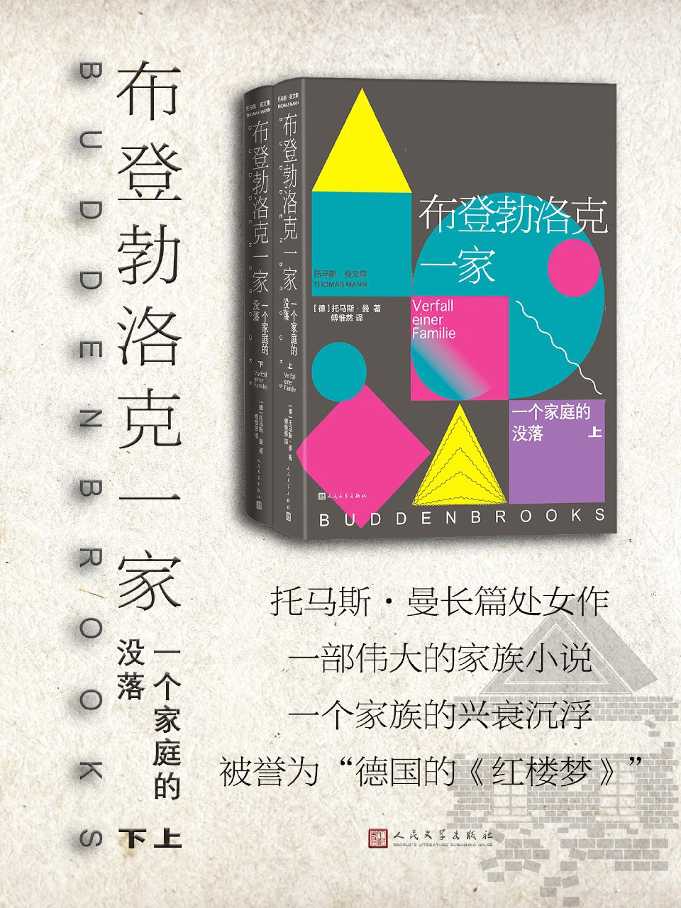 《布登勃洛克一家》(1901)是德国作家托马斯·曼的长篇小说代表作。这部伟大的家族小说记述了吕贝克望族布登勃洛克家族四代人从1835年到1877年间的兴衰史。本书有强烈自传色彩,以曼氏家族的盛衰为蓝本,对现实的描摹丝丝入扣,堪称反映十九世纪德国社会现实的史诗级巨制。贯穿全书的悲剧基调和典雅细腻的风格使其被中国读者誉为“德国《红楼梦》”。